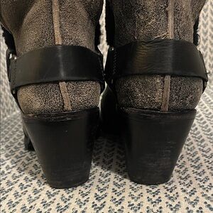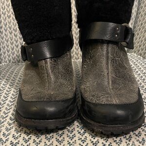 Woolrich Black and Gray Shearling-Cuff Heeled Ankle Boots