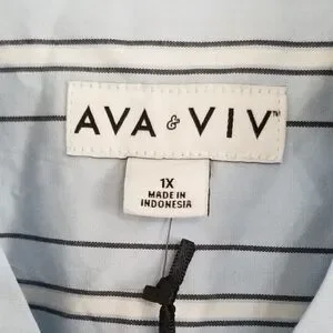 NWT Ava & Viv Blue Stripe Midi Shirt Dress Size 1X