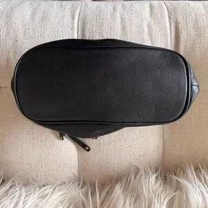 Nolley’s Japan Black Pebbled Leather Shoulder Bag - Minimalist Gold Chain