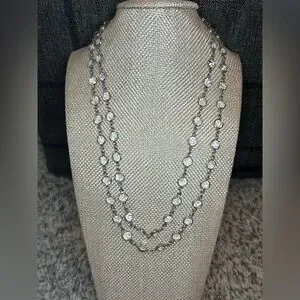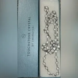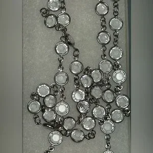 This stunning silver necklace features sparkling crystal accents, perfect for adding a touch of elegance to any outfit.
