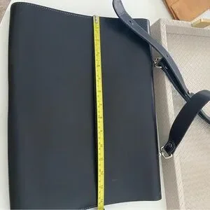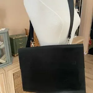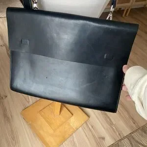 Discover the elegance of this black leather messenger bag, perfect for the modern style. Its sleek design and durable construction make it ideal for daily use. Little bit to tight for my 15 inches Laptop. Very clean inside and outside, no scratch.