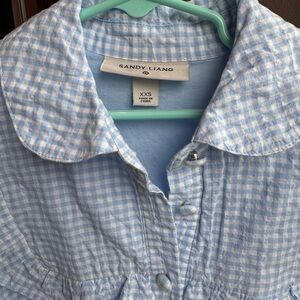 Sandy Liang Petite Light Blue Gingham Ruffle Collar Mini Doll Style Dress