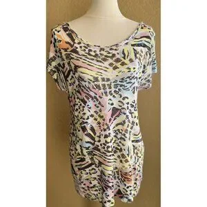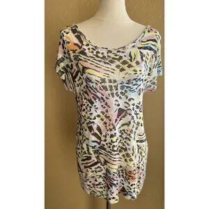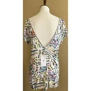 ZARA TRF Woman Colorful Printed Low Back Short Sleeve Casual T Shirt Top Size M