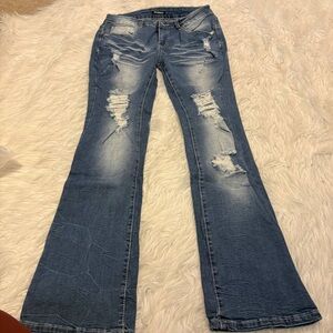 Flamingals Flamingals Flare Bell Bottom Jeans for Women Raw Hem High Waist M