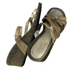 Teva Brown leather Strappy Wedge Sandals, slip on, women’s 8​