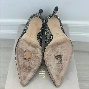 Jimmy Choo Black and Silver Glitter Pointed Toe Stilettos