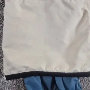 Burton Living Lining snowboard pants engineered for climate-controlled comfort on the slopes. These technical snow pants feature a durable cream-colored shell with contrasting blue reinforced knee panels and a vibrant blue interior lining.