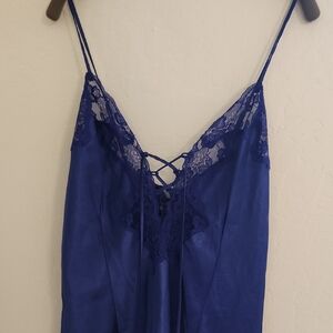 Satin Lace-Up Chemise in Deep Blue
