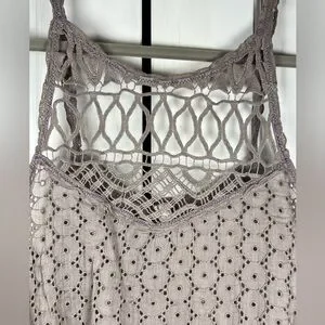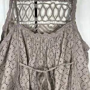 Free People I Got My Eyelet On You Crochet Eyelet Top in Taupe Size Medium