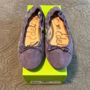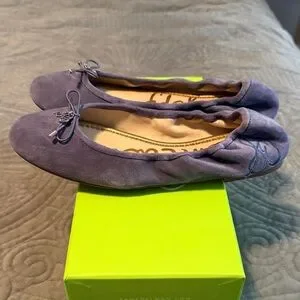 Elegant purple suede flats with bow detail. Perfect for everyday wear. Only worn a few times :)