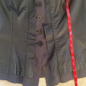 Black leather blazer / jacket with a fabric raw edge trim