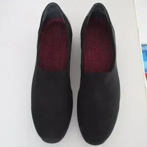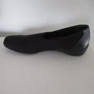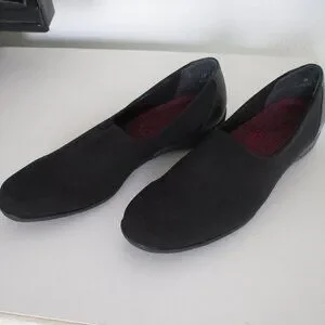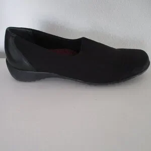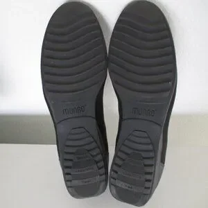 Munro American Womens Black Leather & Nylon Flat Loafer Shoe. Size 10M. Made in the U.S.A. Previously owned but barely used, uppers & interiors are in excellent condition, as are the rubber shock absorbing soles & heels.