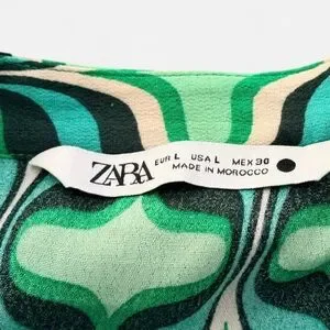 Zara Women’s Green & Teal Print Button Down Blouse, Size Large