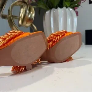 Miss Lola Ewan Orange Beaded Fringe Kitten Heel