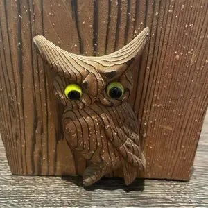 -Carved owl with applied eyes....they are NOT googly eyes (unfortunately)