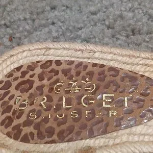 Bridget Shuster tan cheetah heart slides sandals Sz 8 EUC