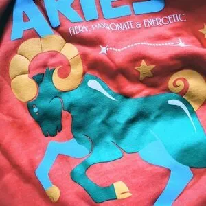 Vibrant orange sweatshirt with a bold Aries print. Super soft & super bright, perfect for the Aries in your life. Size M.
