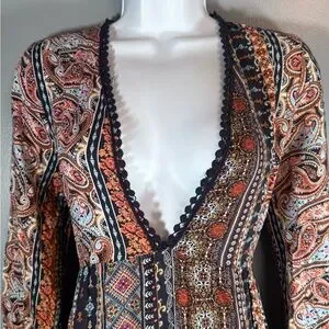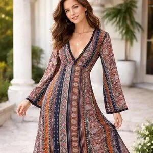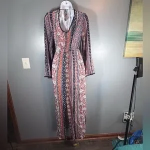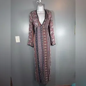 Boho Paisley Maxi Dress Long Sleeve Festival Bohemian Large