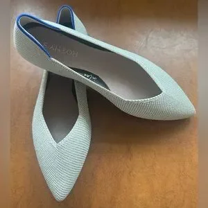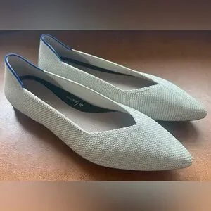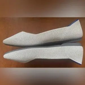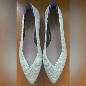 Rothy’s The Point II Diamond Twill Flats Size 8.5 Platinum Pointed Toe NWOB