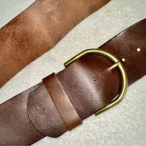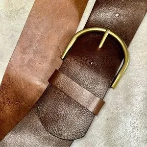 SOLD - Vintage Banana Republic Wide Brown Leather Belt Solid Brass Buckle