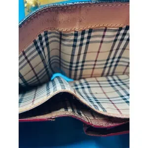 Men's Burberry Black Label Wallet Black Leather Exterior Brown and Red Interior