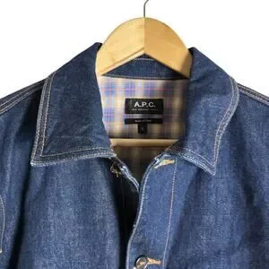 A.P.C. Indigo Anthonin Denim Patch Pocket Button Front Jean Jacket Size Small