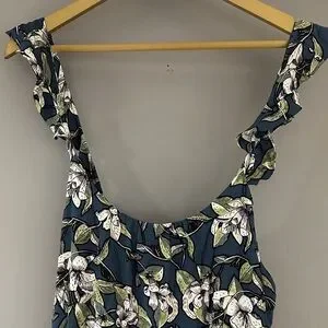 Free People “Dear You” Floral Swing Mini Dress – Navy Floral with Ruffle Straps