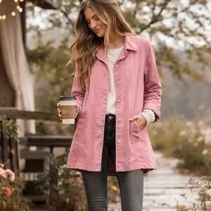 J. Jill Jacket Womens Small Dusty Pink Linen Blend Lightweight Lined Spring Coat. Excellent Condition