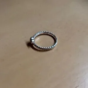 Chic silver ring with a heart accent. Features a twisted band design. Ideal for everyday elegance.