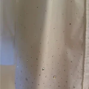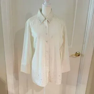 Vintage 1980's Christine Alexander all over/collar rhinestone detailing white button down with 3/4 sleeves
