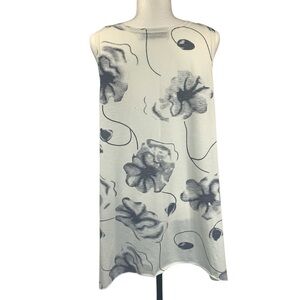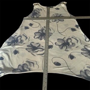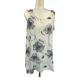 Tunic Tank Top Decorative Rings Y2K Bold Floral Print Off White Dusty Blue M/L Tunic Tank Top. Wood style decorative rings at the shoulders. Sleeveless. The top is longer on each side for a shark bite design. Visible sewn hem. Off White with Bold dusty and darker blue floral print. Boho inspired with Y2K features. Size Medium to Large see measures for preferred fit. Good Used Condition GUC. What I love about his tunic is the soft material with a bold and femine style. Styling Suggestions: Comfortable statement top for weekend outings or home BBQs, add leggings, capris or shorts and done. Materials: 100% viscose Measures: approximate Width 20” Length 27” $Stack up on Style and Save! Bundle three items or more from our closet and receive an automatic 20% discount at checkout. Conditions Apply: Bundle discounts apply to Regularly Priced Items. Bundle discounts not combined with other offers or promotions. T082-406