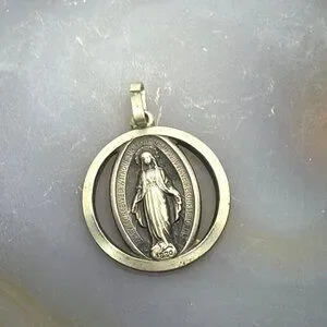 VTG Miraculous Medal Pendant Cutout Open Frame Catholic Holy Mother Religious