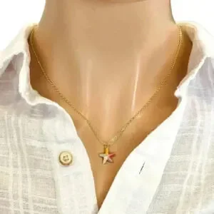 Crafted with a gold-plated chain and a delicate rainbow-hued starfish pendant, it captures the essence of coastal charm. Perfect for beach days or everyday wear, this necklace adds a touch of whimsy and beachy vibes to any outfit.