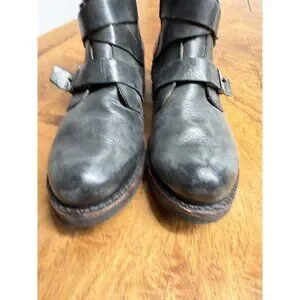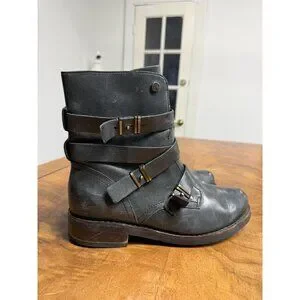 Bussola Prague Women’s 40 Black Ebony Leather Buckle Moto Ankle Boots Steampunk