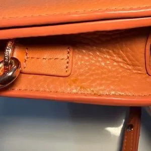 In great used condition. Last 4 photos show the flaws, small markings along with 2 tiny pen marks on the inside flap. Nothing super noticeable, bag still looks great.