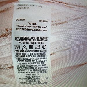 Beautiful heavy weight knit Ted baker dress size 1. In very good condition with no snacks or holes that I can find. Please see photos as it was worn with a dark jacket and it left some marks around the arm pit. Priced accordingly. Still a very beautiful dress in good condition. Tag on the inside has been clipped off as you can see in the photos