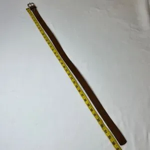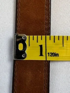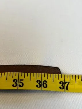 Approximate measurements: size marked on belt - 32/80, belt length from buckle end - leather portion, excluding the buckle measures: 37” Belt has 5 holes total. See photos for measurements to each hole, Width 1 1/8”