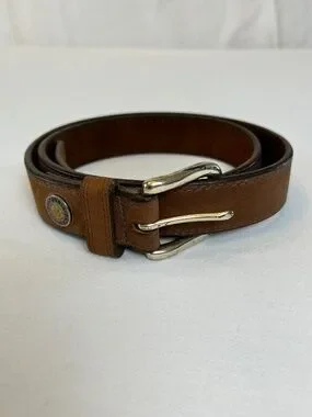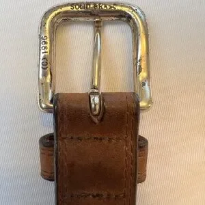 * Features: Vintage leather belt made in the USA, solid brass buckle, size 32/80