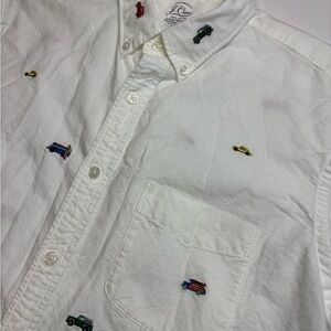 J. Crew lightweight Oxford cloth cotton button front long sleeve shirt in car print