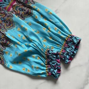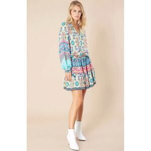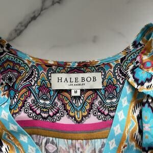 Hale Bob Oona mini Dress turquoise blue print Size M Boho chic Western Festival