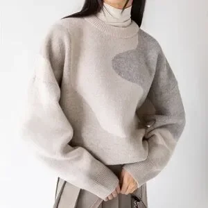 Elegant crew neck sweater with a soft texture. Features a blend of cream and gray tones. Ideal for layering.
