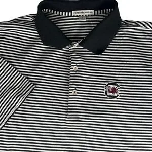 S. Carolina Gamecocks Peter Millar Striped Polo Shirt Mens L Black White Cotton
