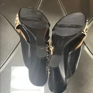 Stylish slide with a bold leopard print. Comfortable and chic design. Perfect for casual wear and a dressy occasion. A lot of life left. Comfortable. Shoot me a reasonable offer. 9M