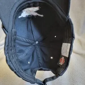 Very good condition Harley Davidson black adjustable hat with Sturgis script, full-color logo, and “South Dakota” embroidery. Breathable eyelets and metal finish buckle strap.