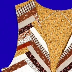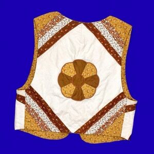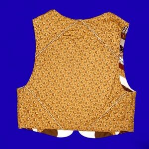 Vintage 70’s Handmade Brown Cream Patchwork Floral Cottage Reversible Vest