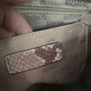 Elevate your style with this chic Michael Kors faux snake print leather large tote bag. Featuring elegant gold accents studs, this bag is perfect for any occasion. Its spacious design ensures you can carry all your essentials with ease. Can wear on shoulder or crossbody it ! Comes with original strap ! ๐