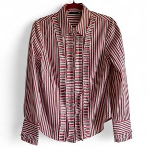 Carlisle Women's Tuxedo Ruffle Front Striped Button Down Shirt Size 8