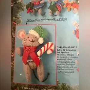 vintage 1994 Bucilla "Christmas Mice" set of 12 ornament felt applique kits