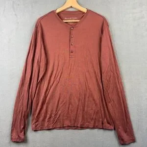 Wool & Prince Mens Merino Wool Blend Long Sleeve Henley Shirt Rust Brown Size L