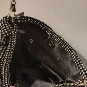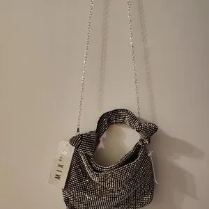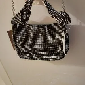 This stylish clutch features a striking black and silver design, perfect for adding a touch of glamour to any outfit.